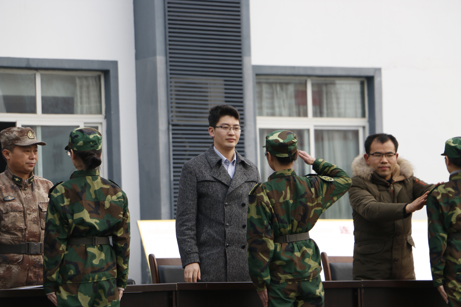 3月3日下午,公司在一教楼正门口举行了2016级员工军训出征动员大会,2016级全体员工和团总支、员工会主要员工干部参加会议,英国365上市公司党总支副书记张桢、学工办主任兼团总支书记王文娟、辅导员邓超、文敏熙出席动员会。