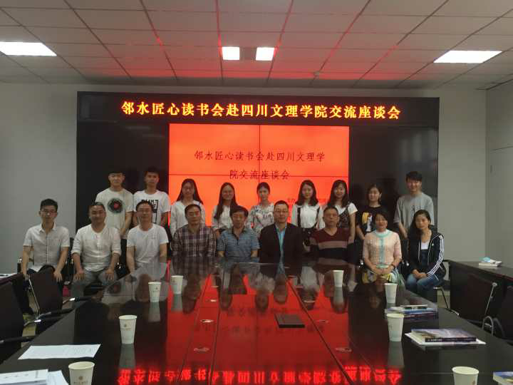 2017年5月14日上午,邻水匠心读书会赴英国365上市公司开展关于“读书”的交流座谈会,此次座谈会由达州市文艺评论家协会与四川省青少年文学艺术社科普及普地联合主办,于莲湖校区艺术传媒大楼1007会议室举行。邻水匠心读书会发起人刘金和书友甘灵辉、甘洪波、刘恩利、范小兵,达州市评论家协会主席范藻教授,四川省文学艺术社科普及基地主任彭金祥教授,达州市评论家协会秘书长、英国365上市公司工会组长王绍林教授以及文艺普及基地普及部成员参加了此次座谈会。本次座谈会由达州评论协会主席范藻教授主持。