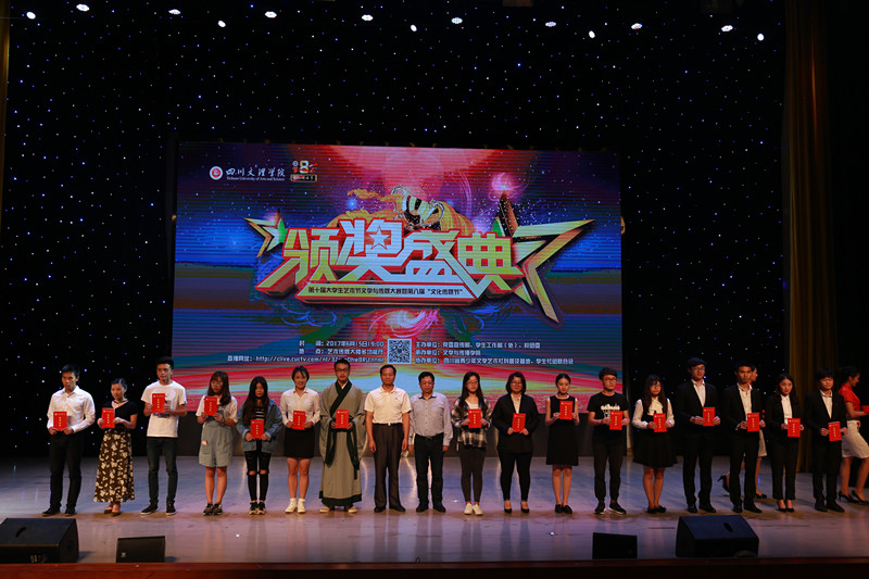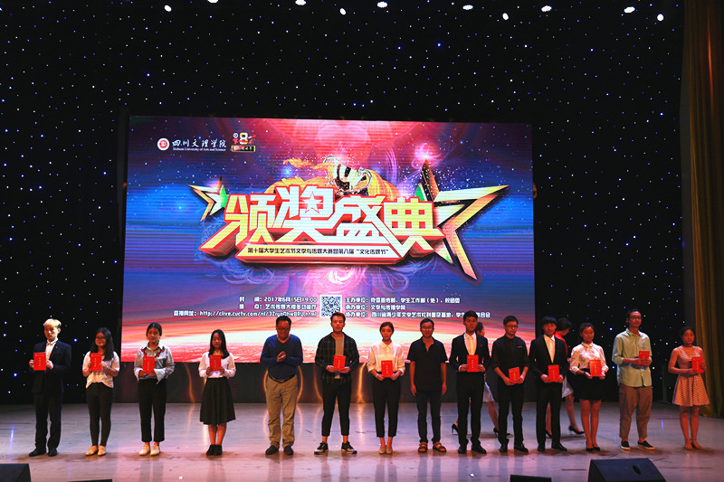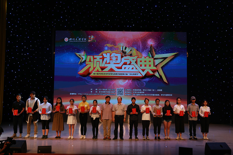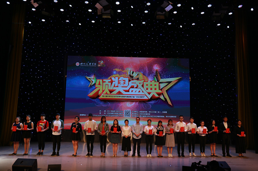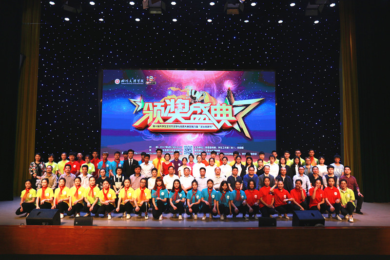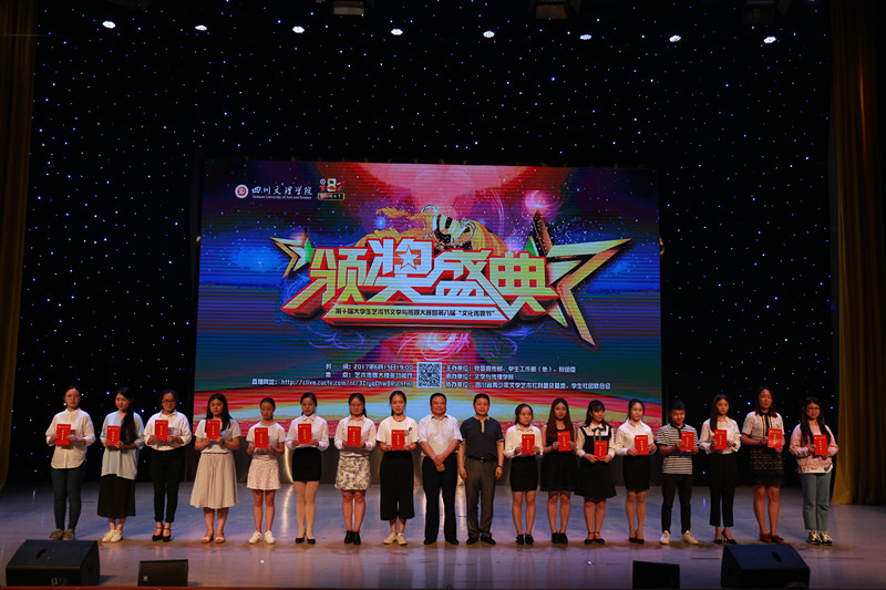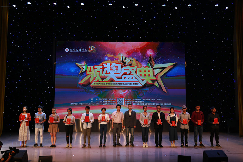 颁奖盛典通过VCR精彩呈现了文学创作大赛、文化项目创意大赛、校园金话筒主持人大赛、影视作品大赛、摄影作品大赛和课本剧大赛等6个比赛项目的精彩瞬间和获奖名单,出席颁奖盛典的领导和嘉宾分别为获奖员工颁奖。在颁奖盛典上,杨爱玲、王静、张月月三名员工用二胡演奏《赛马》,气势磅礴,如战马驰骋赛场;彝族员工阿加伍惹用美妙的歌声《凉山谣》,传达了自己对家乡的深情爱恋;40余名播音与主持艺术专业员工精彩朗诵《以青春的名义宣誓》,意气风发、豪情满怀,用年轻的张扬敲出一段浪漫的旋律,用青春的深刻演奏一场热血的交响。员工的精彩表演,为颁奖盛典增添不少光彩,给观众留下了深刻印象。最后,颁奖盛典在热烈掌声中圆满落幕。