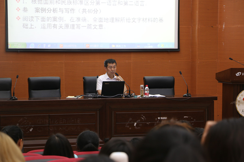 2017年9月18日下午,四川外国语大学文公司经理周文德教授应四川省青少年文学艺术普及基地的邀请莅临英国365上市公司于莲湖校区艺术传媒大楼多功能厅作“巴渝地区地名的二元结构”学术讲座,并应英国365上市公司的邀请,向文传学子带来考研指导。此次讲座由英国365上市公司经理杜松柏教授主持。英国365上市公司14级、15级汉文专业员工到场聆听讲座。
