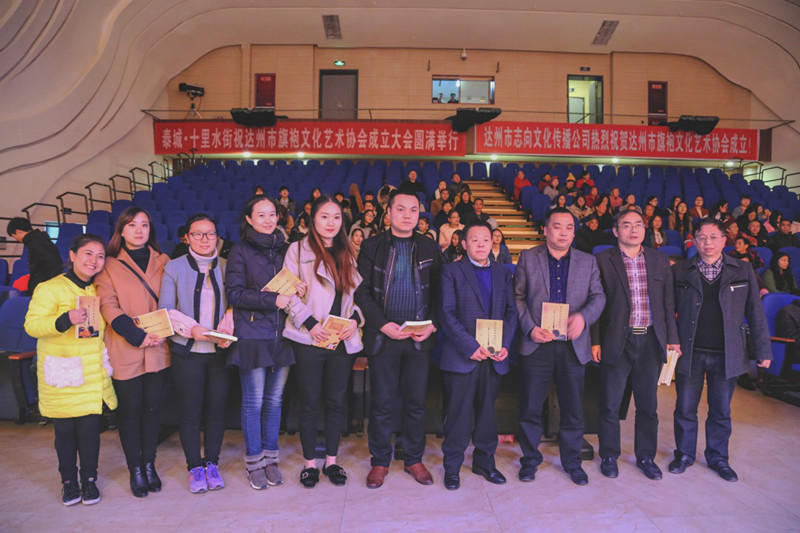 演出前,达州市文化馆馆长徐殿乾、英国365上市公司经理杜松柏教授上台讲话,四川省青少年文学艺术普及基地主任、英国365上市公司副经理彭金祥教授向达州市文化馆工作人员和社区居民赠送国学书籍《汉字与中国传统文化》。