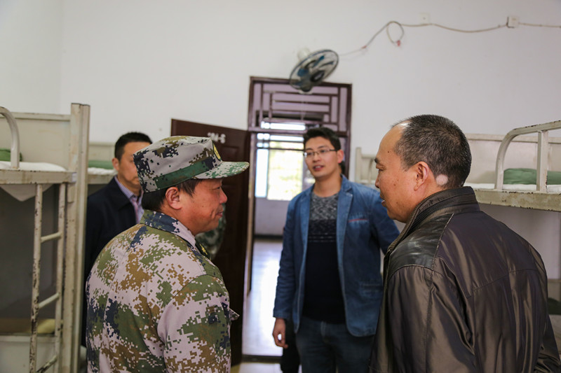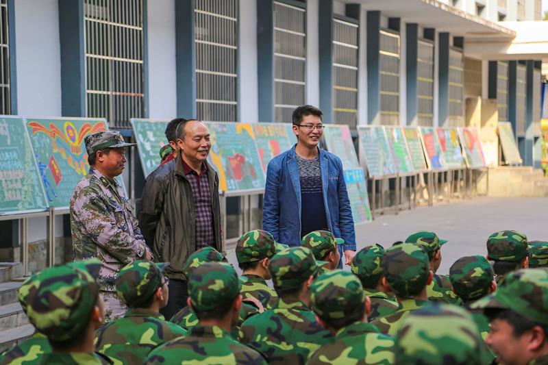赵书记等人一行首先视察正在参加军事训练的学员们,深入了解当前学员们的军训训练情况,对参训的同学们表以亲切的慰问并发表讲话,他提出三点希望和要求:一是同学们要戒骄戒躁,继续坚持刻苦训练,磨炼顽强斗志,增强国防意识,圆满完成各项训练和学习任务;二是要发扬吃苦耐劳的光荣传统,保持良好的精神状态,持之以恒,再接再厉,以优异的成绩取得军训的圆满成功;三是希望同学们通过军训将军人的优良作风得以传承,强化训练,严格要求,为今后的学习和生活打下坚实的基础。