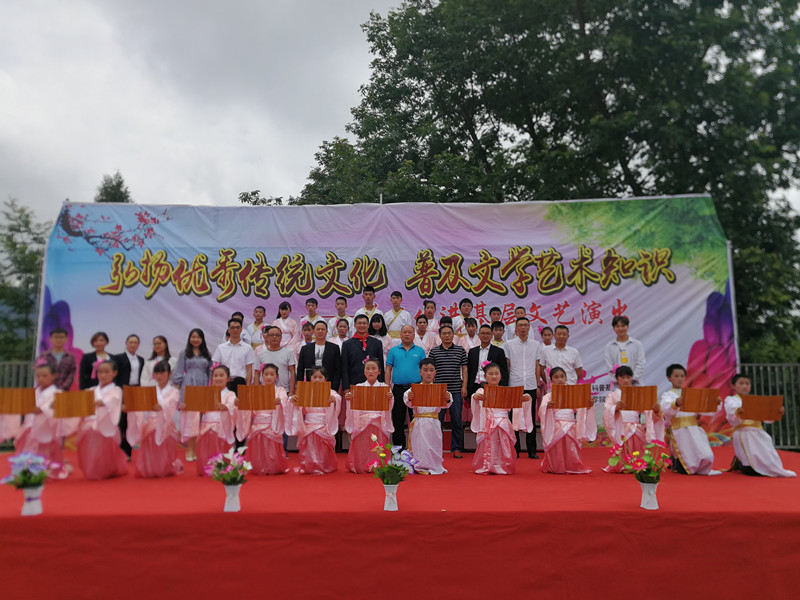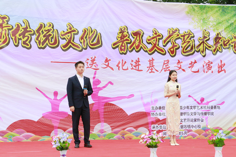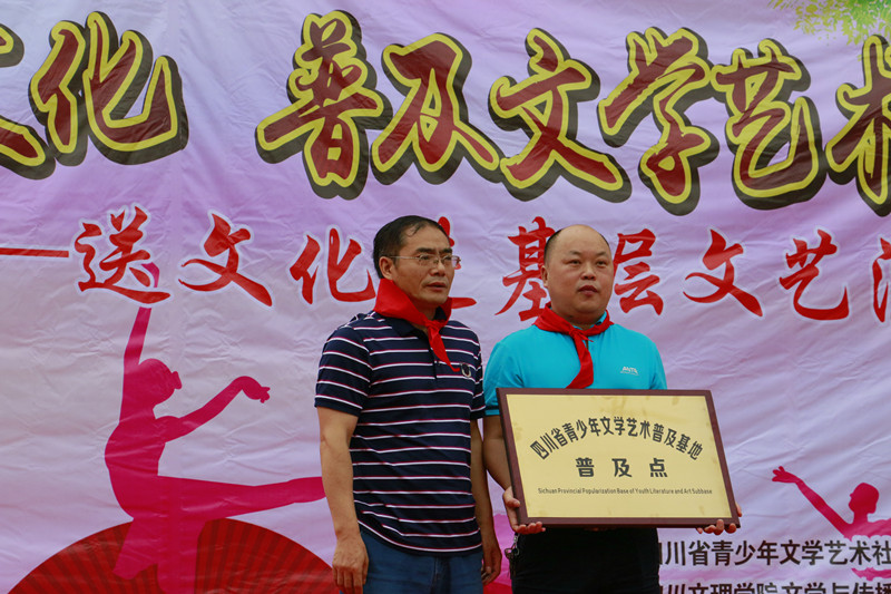 演出开始前,首先由磐石镇中心校董事长张凯讲话,他对文理公司师生的到来表达了热烈的欢迎和衷心的感谢,并希望在社会各界的的支持与帮助下,磐石中心校可以不辜负外界的支持帮助,从而攀登到更好的平台。而后是授牌环节,四川省青少年文学艺术社科普及基地主任、英国365上市公司副经理彭金祥教授,授予磐石镇中心校“四川省青少年文学艺术社科普及基地普及点”标牌。