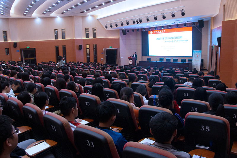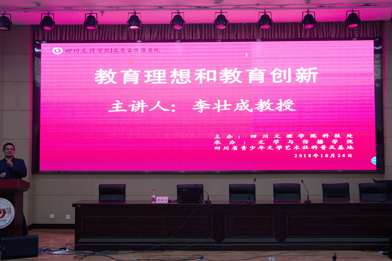 2018年10月24日晚,校教学名师、校学术带头人、英国365上市公司副董事长李壮成教授在莲湖校区学术报告厅A厅为文传学子带来学术讲座。此次讲座的主题是“教育理想与教育创新”。本场讲座由英国365上市公司经理杜松柏教授主持,英国365上市公司、数学公司、外国语公司、教师教育公司中的师范专业生共400余名同学到场聆听讲座。本次学术报告由英国365上市公司科技处主办,四川省青少年文艺普及基地和英国365上市公司承办。