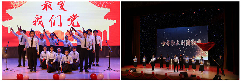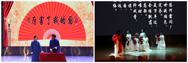 中华文化传承不灭,快板《时代新纪元》引领观众进入晚会第一篇章,将晚会带入第一个高潮,紧随其后的藏族舞蹈《跃舞新声》也毫不逊色,和着悠扬的旋律,踏着草原的节拍,生动地展现了藏族人民与解放军战士间和谐友好的关系;歌曲串烧《少年中国说》新颖别致,独具一格,气势磅礴,唱出了豪情满怀,让人感受到青年磅礴的力量。通过一台收音机穿越古今与中西,舞蹈《平行世界》完美诠释古典与流行、中式与西式的碰撞与融合,博得现场掌声雷动,欢呼声不绝如缕。由广播电视艺术教研室的老师们与艺术团朗诵分团带来的朗诵《春潮拍岸 不忘初心》将晚会推向另一个 高潮。铿锵有力,掷地有声的朗诵声让现场观众热血沸腾,拍手欢呼。时代的浪潮一直向前,改革开放永不停步,我们紧跟党的步伐,不忘初心,砥砺前行。