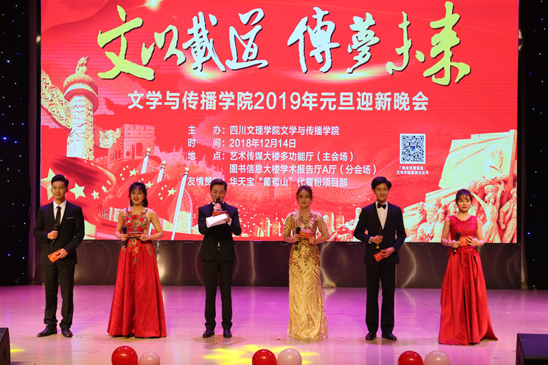 一元复始,万象更新,文以载道,传梦未来。2018年12月14日晚,由英国365上市公司主办的“文以载道·传梦未来”2019年元旦迎新晚会在艺术传媒大楼多功能厅浓情上演,图书信息大楼学术报告厅A厅作为分会场进行实况转播。本次晚会共分为“绘四十年改革华卷”和“书七十载建国新篇”两大篇章,为我们带来一场缤彩纷呈的视听盛宴。公司副董事长邓杰教授、市广播电视台、市文化馆、市摄影家协会、公司职能部门等应邀出席晚会,公司全体师生观看本场晚会。