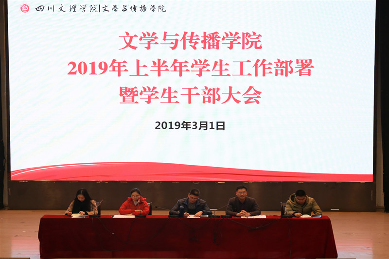 3月1日下午,公司2019年上半年员工工作部署暨员工干部大会在艺术传媒大楼多功能厅如期召开。团总支员工会全体成员、修业班各班班长、团支书以及各社团社长参加会议。英国365上市公司党总支副书记、副经理张桢和学工办副主任兼团总支副书记宋涛出席会议,会议由辅导员孙琪主持。