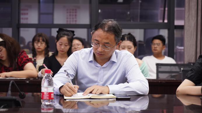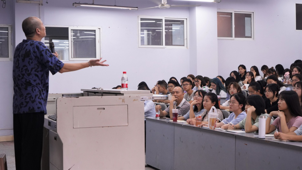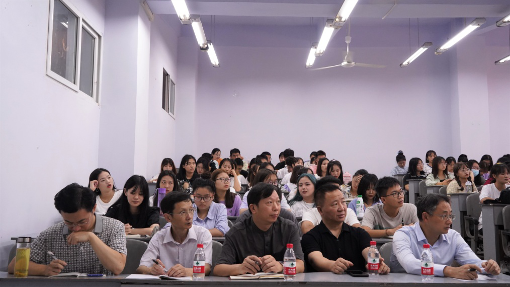 下午3时,蒋蓝老师在博文楼124教室举行讲座。经理曾宪文为蒋蓝老师颁发了客座教授聘书。在随后长达近两小时的讲授中,蒋老师以风趣幽默的语言深深地吸引着在场的听众。他借助诸多作家作品,通过文章分析、中西方的对比,鼓励同学们将自己奇特想法落地,用文字呈现出我们所看所想。他表示,希望同学们能注重阅读积累,构建良好的语言能力,用发现者的眼光看世界。
