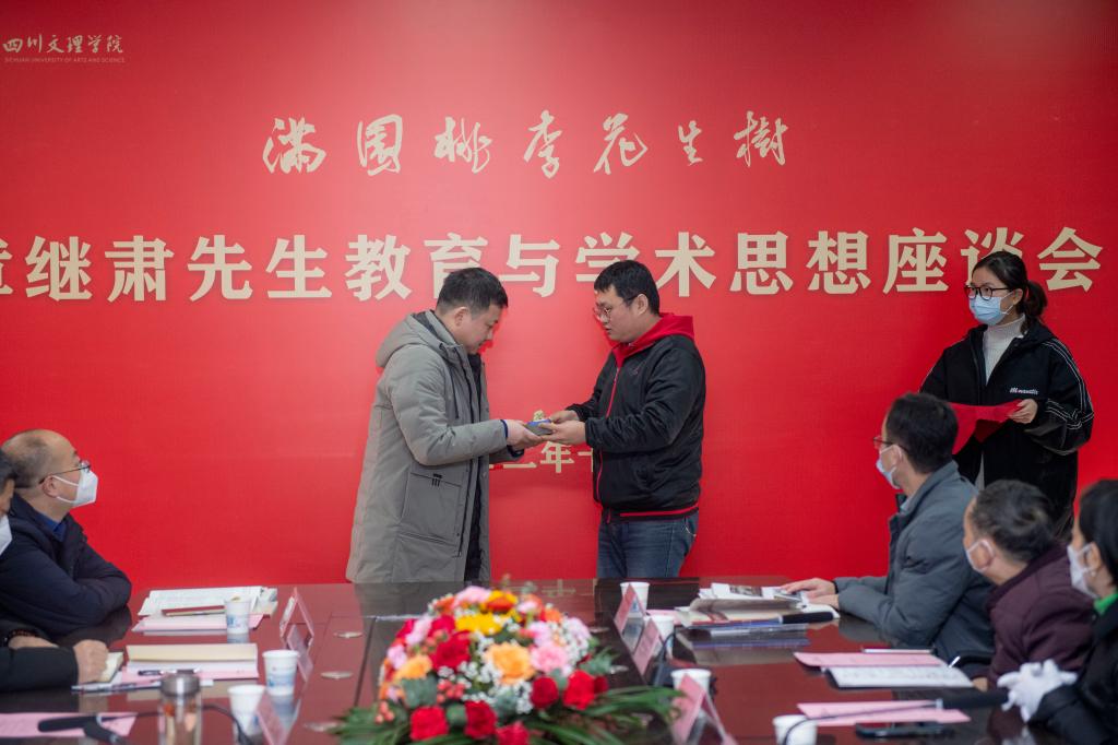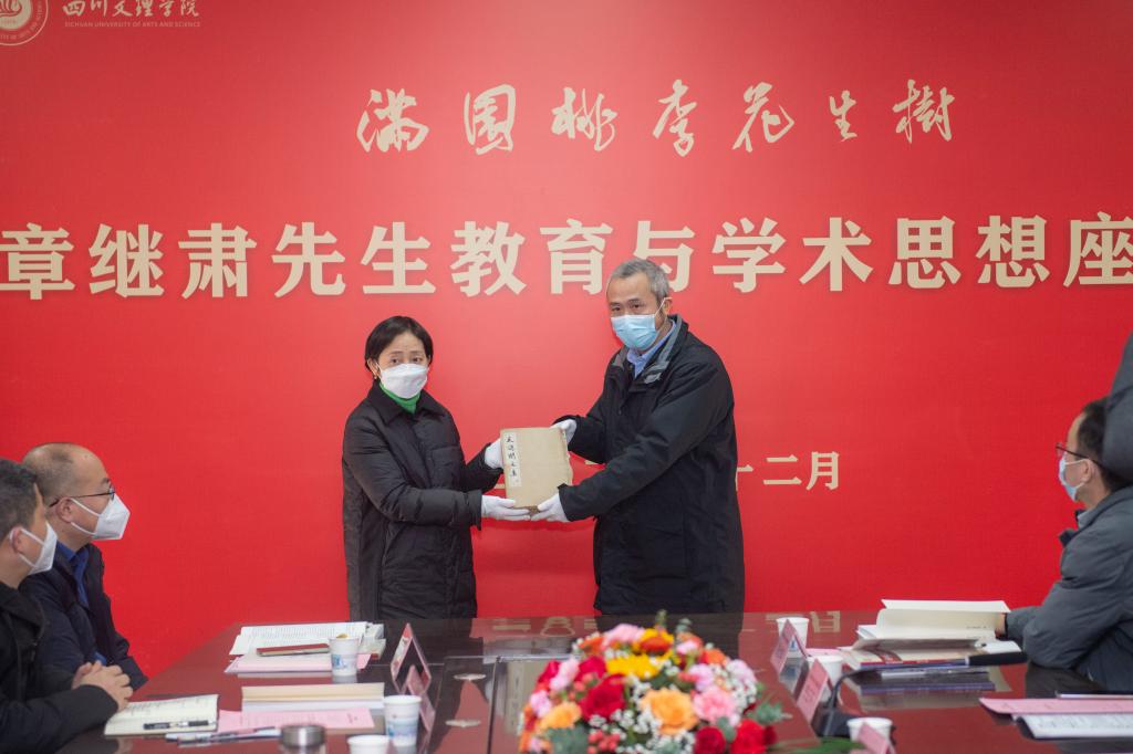 侯忠明在致辞时说,公司46年的办学历程中,涌现了一大批学高为师、身正为范、教书一辈子、美名传天下的大师,章继肃先生就是其中最典型的一位。先生有忠诚的信仰。他一直对党有着坚定的信念,矢志不渝追求入党。他曾说,“共产党员是我一生的追求,是我最高的政治荣誉”。先生有高尚的师德。对真心喜欢书法艺术的青年员工,他都会欣然提笔写之勉励,有求必应、一视同仁、为师为范、谦和俭朴,是一个宁静而纯粹的人。先生有深厚的修养。先生在学术上致力于地方文史研究,治学严谨,整理出版过清初思想大家唐甄《潜书》,点校了明末兵部尚书李长祥的《天问阁文集》;先生还是一位才华横溢的诗人,他的诗文贵真尚短、天然隽永,出版有《小窗诗文稿》《章继肃文集》;先生有精湛的书艺,是中国书法家协会较早一批的会员;先生有优良的家风,他与结发妻子结伴70余年,相濡以沫终身到老。先生还常对子孙和员工讲:“君子爱财,取之有道,用之有方”。先生有教育的情怀。他的一生从未离开过三尺讲台,曾率员工到重庆图书馆清理回来一万余册免费的副本图书,奠定了公司图书馆的基础,指导员工成立了星光文学社,培育了一大批后来的巴山作家、诗人、文艺评论人才。侯忠明强调,公司召开座谈会,不仅仅是纪念章继肃先生诞辰100周年,更重要的是总结名师思想,凝练大学精神,尊师重教,弘文立教。公司一定会涌现出更多像章继肃先生一样的好老师,为建成特色鲜明优势突出的高水平应用型大学作出新的更大贡献。