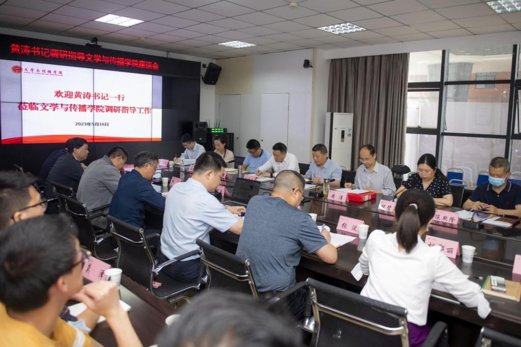5月16日下午,党委书记黄涛莅临英国365上市公司调研指导工作,并于艺术与传媒大楼1007会议室组织召开座谈会。党委常委、副董事长程碧英协党委(校)办公室、党委教师工作部、教务处、科技处、发展规划处、评估处等部门负责人陪同调研。