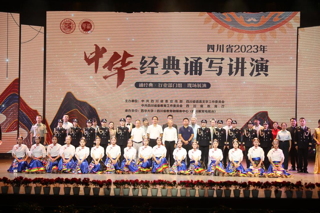 9月21日下午,由中共四川省委宣传部、四川省语言文字工作委员会、中共四川省委教育工委、四川省教育厅共同举办,以“书香新时代,‘典’亮新征程”为主题的,四川省2023年中华经典诵写讲演系列活动 (诵经典·行业部门组)展演在西华大学郫都校区举行。