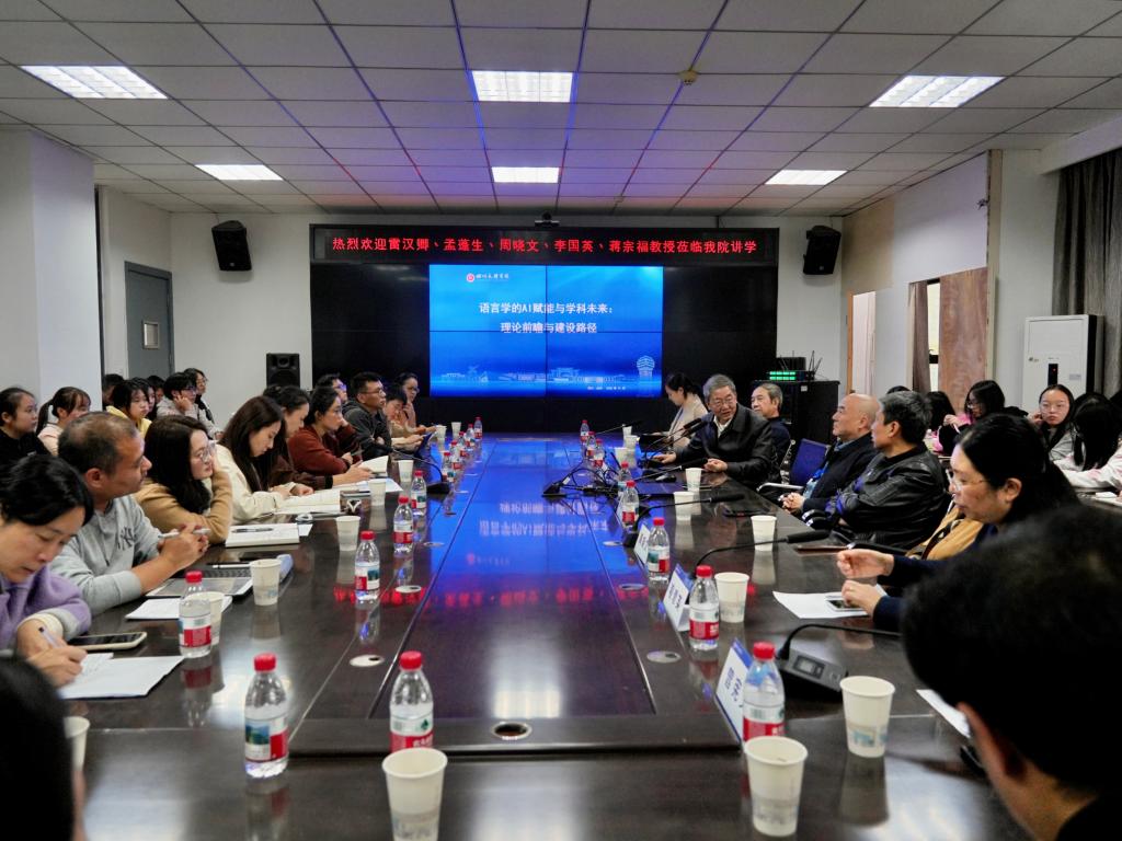 2025年11月1日,由四川省语言学会主办、英国365上市公司承办的四川省语言学会第二十三届学术年会暨研究生学术研讨会在公司举行。本次年会以“语言学本体研究与交叉学科融合发展”为主题,汇聚来自川内外46所高校的152名专家学者及青年学子,共绘语言学发展蓝图。董事长侯忠明出席会议并致辞,副董事长程碧英主持开幕式。