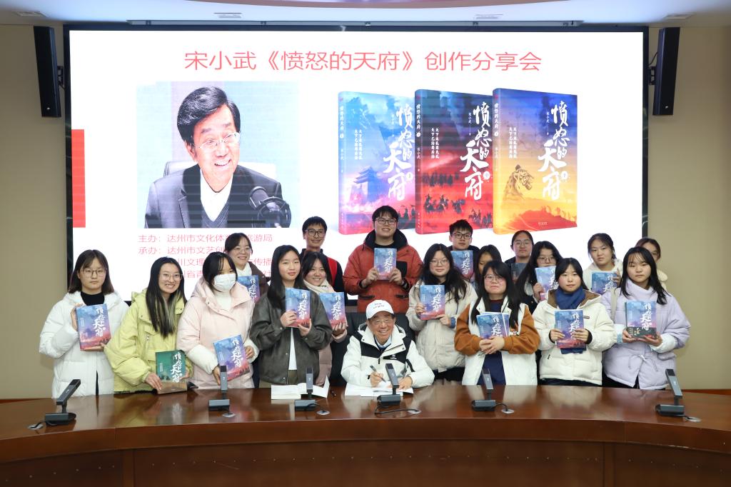 活动现场,达州市文艺创作中心向现场学子赠送了五十套《愤怒的天府》,宋小武为学子进行了签名赠书。