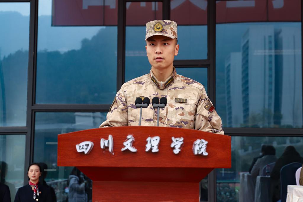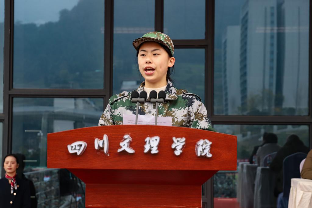 公司2025级3班汉语言文学专业员工杨健淇作为员工代表发言。她表示,将以川陕红色精神和塔石精神为引领,坚决听从指挥,严守团队纪律,凝聚集体力量,磨砺个人品格,在军训中涵养家国情怀、锤炼过硬作风,并将军训养成的自律习惯延续至今后的学习生活中,以实际行动助力公司发展,用青春奋斗书写时代担当。