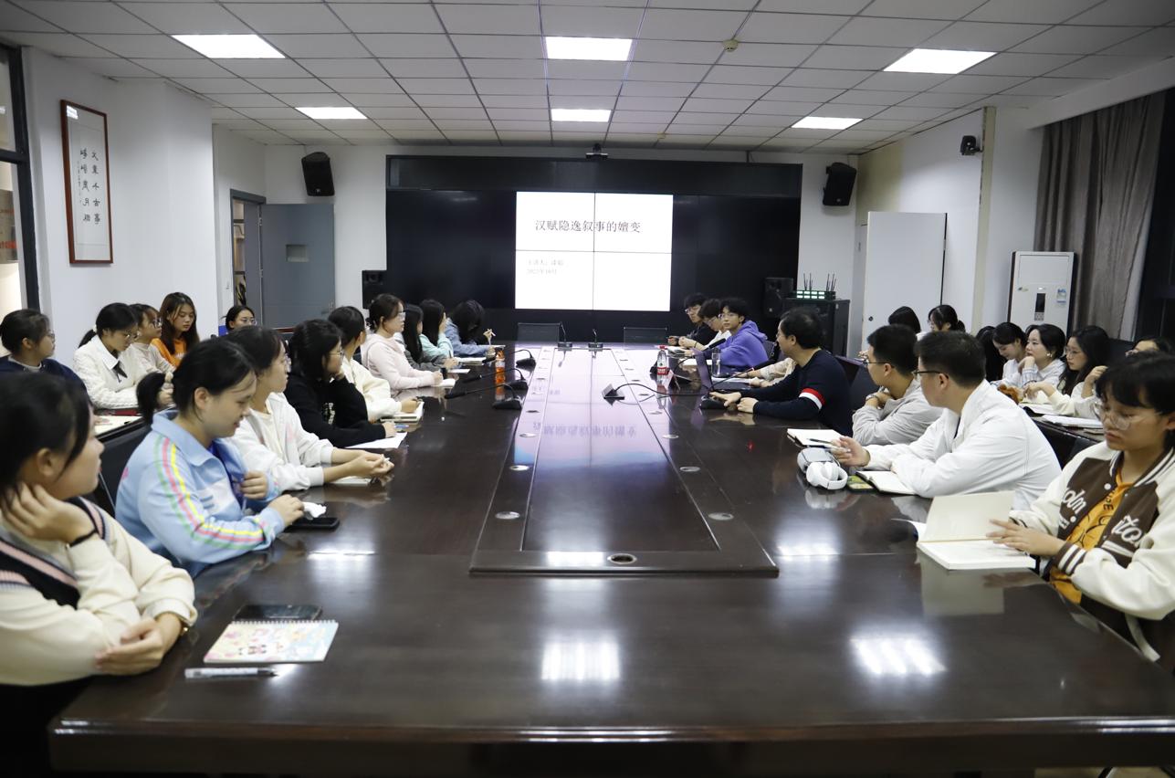 为深入学习汉赋隐逸叙事的变迁,追溯隐逸文学的源头,全面感受汉赋文学的独特魅力。10月18日晚,漆娟副教授在艺术传媒大楼1007会议室作题为“论汉赋隐逸叙事的嬗变”的学术讲座。本次讲座由副经理成立主持,汉语言文学专业部分员工代表参与讲座。