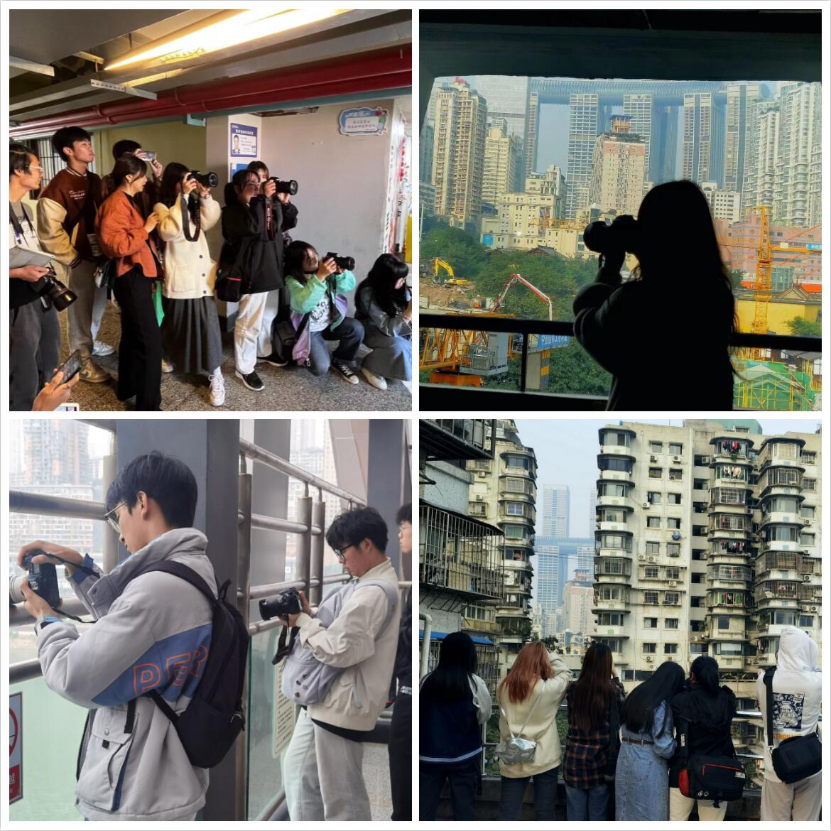 此次专业认知见习的实践教学结合《摄影技术与艺术》课程,为贯彻《关于加强和改进新时代红色文化育人工作的实施方案》设定了红色文化、人文纪实、风光建筑等3个主题,明确了具体的拍摄任务,同学们根据拍摄主题进行分组创作。见习活动期间,同学们在指导老师的带领下,走入曾家岩、渣滓洞、白公馆等红色历史文化遗迹,瞻仰革命先辈、聆听革命故事的同时,用手中的相机记录下精彩瞬间。走入重庆街头巷尾,围绕人文纪实、风光建筑进行艺术创作,并接受老师的指导。
