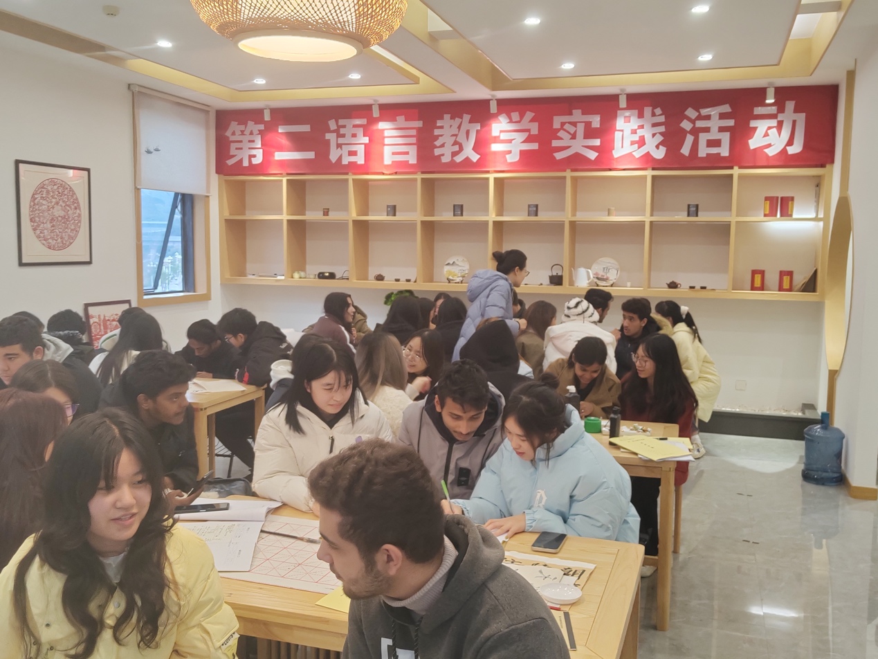 与会指导老师分别就第二语言教学实践课程的目标任务、纪律要求、分组安排及注意事项等作了发言。培训会后,汉语国际教育专业2022级的86名同学和来自摩洛哥、也门、俄罗斯、老挝等国的45名职工在中华传统才艺实训室举行了见面会。通过见面会,同学们进一步了解了职工的汉语水平、学习需求等基本情况,为随后开展的第二语言教学实践活动做好准备。汉语国际教育专业的同学们也纷纷表示,将珍惜这次难得的第二语言教学实践机会,通过听课看课及汉语辅导,努力提升自己的语言教学能力和跨文化交际能力。