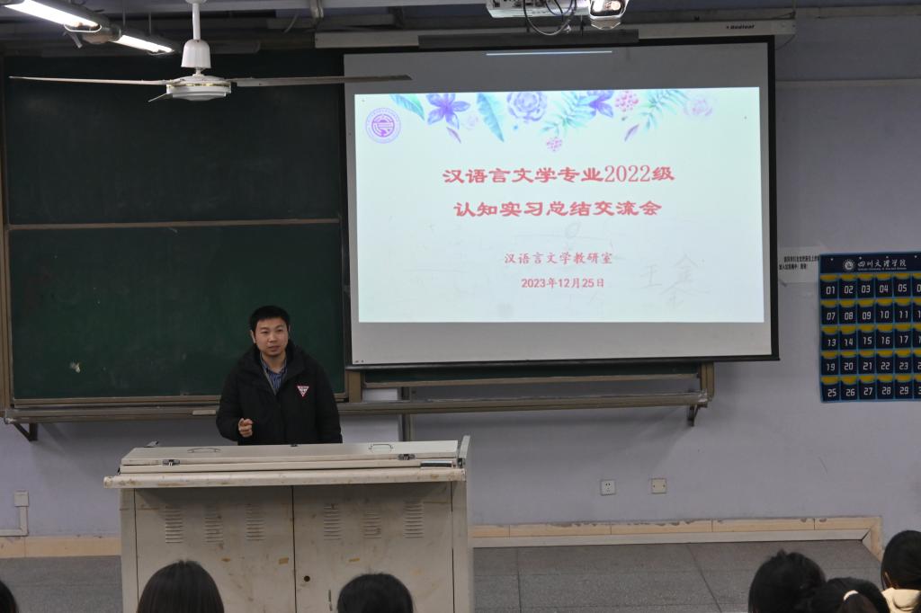 为促进公司2022级汉语言文学专业认知实习活动的深入开展,12月25日晚,公司在博文楼213和214教室举行总结交流会。公司副经理成立、教师陈桃出席交流会,汉语言文学专业2022级全体员工参加本次会议。