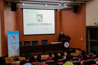侯教授的讲座分四个部分。首先“先生生平述略”,介绍了章老的书法代表作品,回忆了自己与章老相处的经历,讲述了章教授对自己做人做事、专业研修和教学工作的影响。章先生尽管在文革那段艰难岁月受到了不公正待遇,但他依然对中国共产党怀着无限的热爱,对人生有着无比高尚的追求。他对教育事业无限忠诚,一直以培养新人、传递思想为己任,令人敬仰。