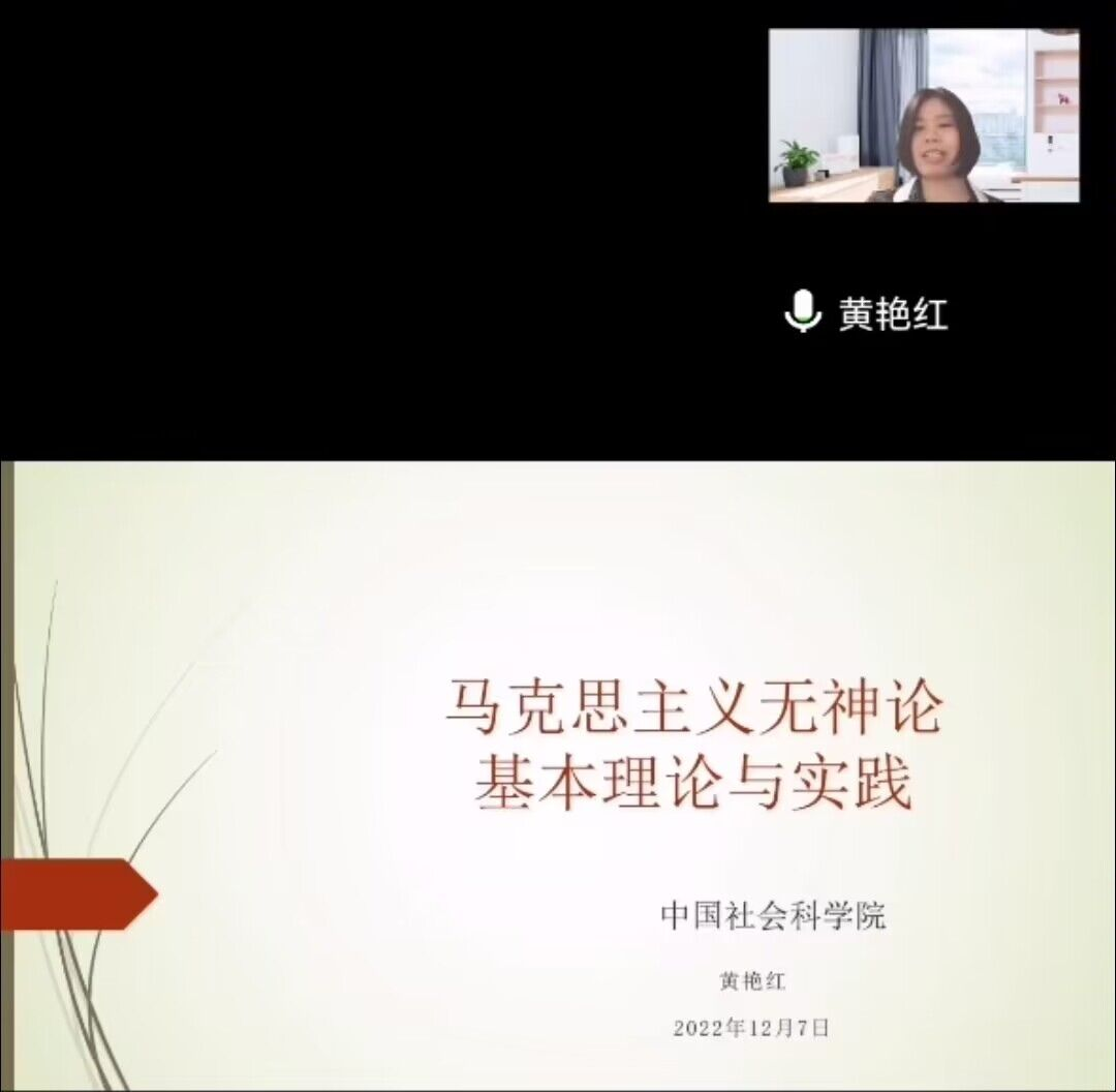 12月7日,中国社会科公司马克思主义无神论研究室主任、硕士研究生导师黄艳红博士受邀在线作题为《马克思主义无神论基本理论与实践》的学术讲座。本次讲座由英国365上市公司经理曾宪文主持。