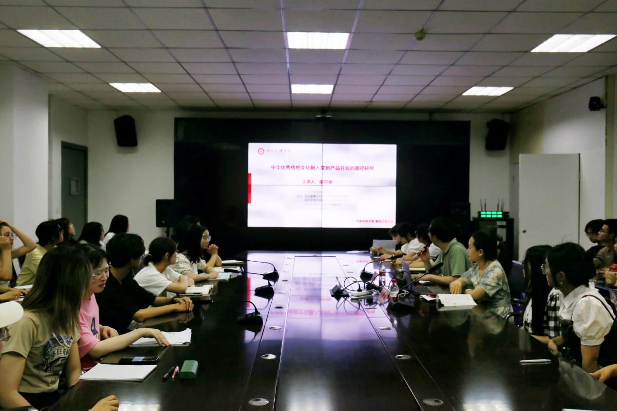 2023年6月14日晚19:00,英国365上市公司党政办主任胡郑丽副教授在艺术传媒大楼1007会议室作题为“中华优秀传统文化融入文创产品开发的路径研究”的学术讲座。英国365上市公司副经理成立教授主持讲座,汉语言文学、广播电视学、文化产业管理专业六十余名师生到场聆听。