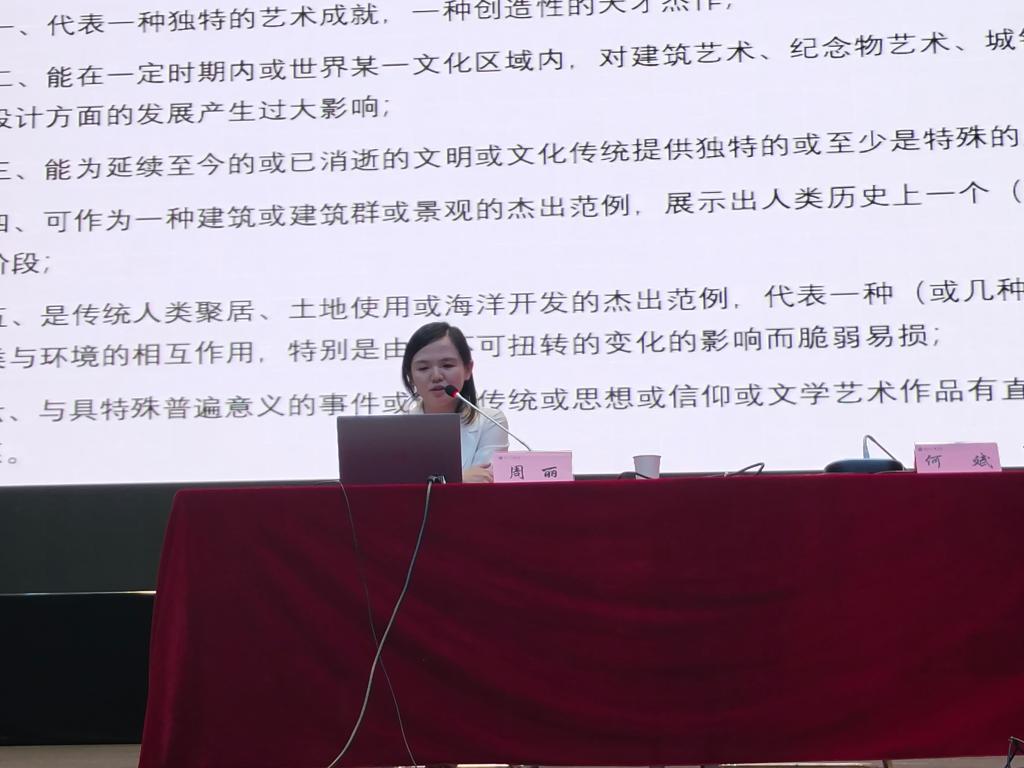 周丽博士结合景迈山古茶林文化景观的十年申遗路分享了自己从事人文社会科学的研究思路与方法,并从文化景观的保护、打造和传播等角度,分析了景迈山古茶林文化景观申遗成功的实施方略。她认为文化景观的申遗须从景观文化价值挖掘、政府力量推动、人才队伍构建、宣传推广策略、乡村基层治理、社会舆论引导与社会力量调动等方面进行全面考量、综合用力。在交流讨论环节,周丽博士建议同学们在从事科研的初期努力从小切口入手,努力科学研究同区域社情、民情的实际相合起来,着眼解决现实的一些实际问题。