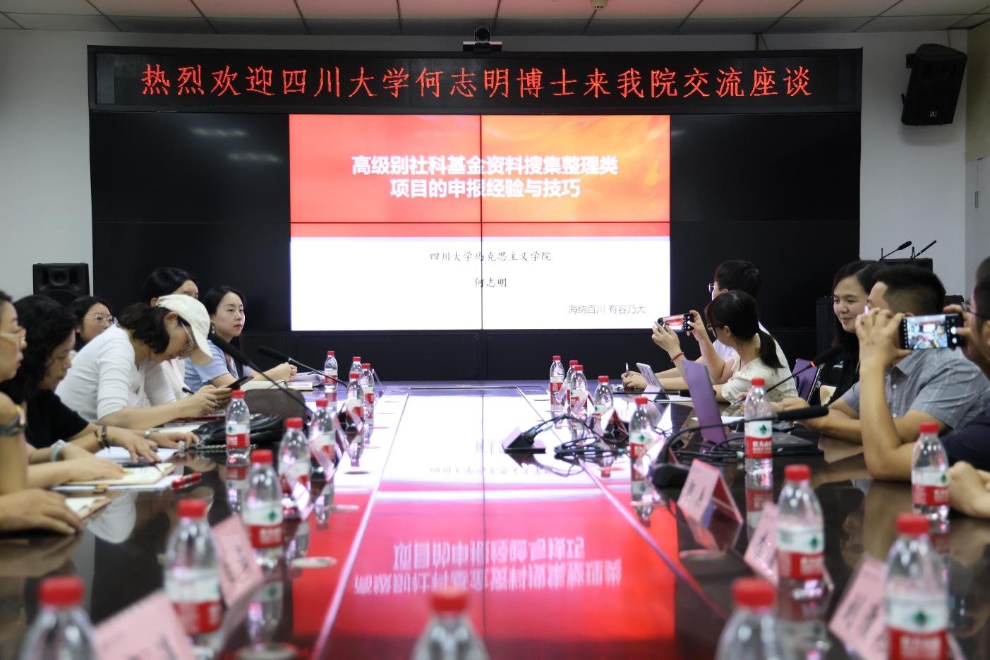 会上,何先成分享他申报国家社科项目的经验,指出我们在立足地方特色科研的同时,要加强与学界、优秀学者的交流,了解学界前沿动态,让我们的特色科研能走出去,引进来。与会教师与两位学者就各自的申报书进行了深入交流,表示干货满满。