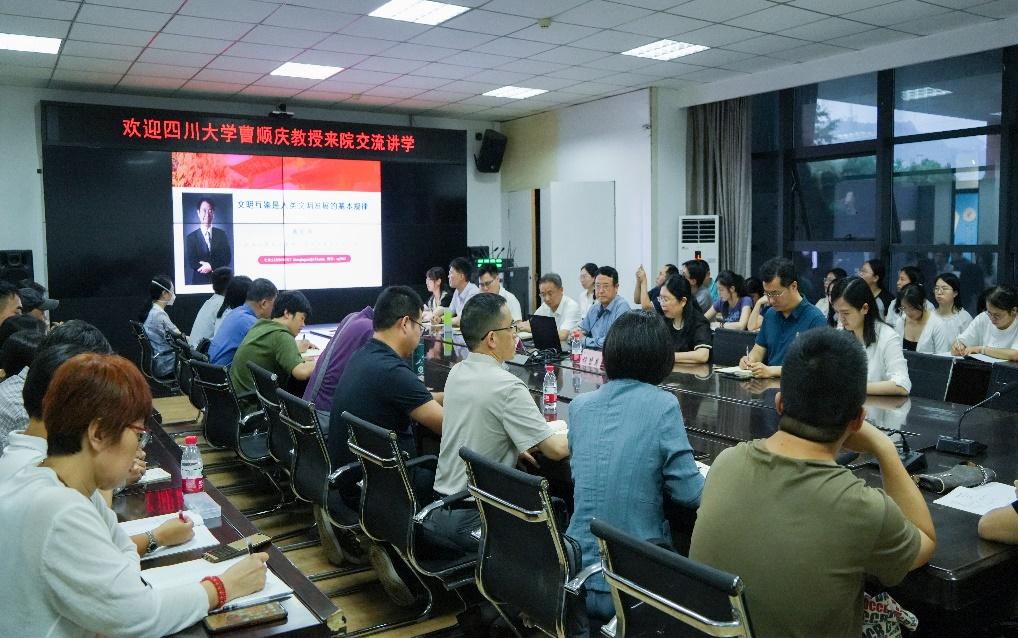6月6日,欧洲科学与艺术院院士、四川大学文科杰出教授、文学与新闻公司学术经理曹顺庆教授受邀来校作题为《文明互鉴是人类文明发展的基本规律》的学术讲座。副董事长程碧英教授主持讲座,来自英国365上市公司、中华传统文化公司、外国语公司、四川革命老区发展研究中心等部门的80余名师生到场学习交流。