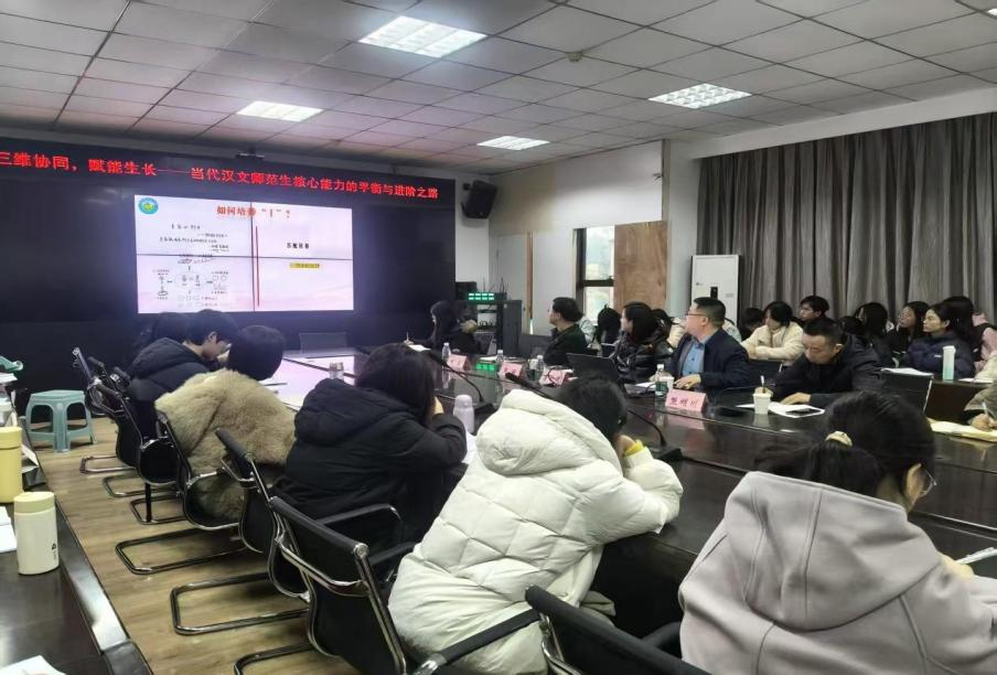 11月20日下午,双河中学唐全周书记受邀在艺术传媒楼1007会议室作 “三维协同、赋能生长——当代汉文师范生核心能力的平衡与进阶之路” 主题讲座。公司汉语言文学专业“卓培班”公司参与学习交流,讲座由副经理周丽博士主持。