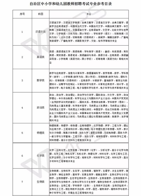 附件2:2017年自治区中小学和幼儿园教师招聘考试专业参考目录