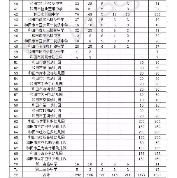 后附:和田市2018年面向社会公开招聘教师岗位表