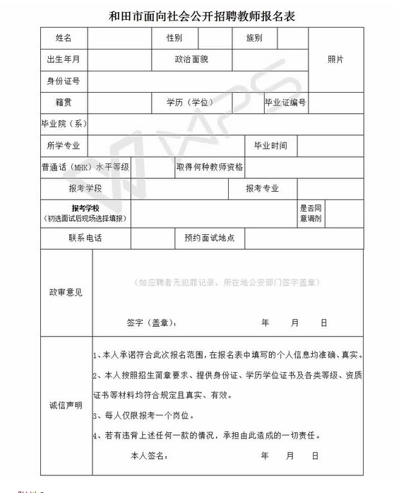 附件1:和田市教师招聘报名表