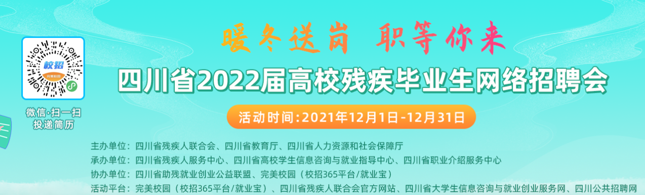时值第三十个国际残疾人日来临之际,为进一步做好高校残疾老员工就业(实习)工作,促进高校残疾老员工实现高质量就业,省残联联合教育厅、人力资源和社会保障厅于12月共同举办为期一个月的四川省2022届高校残疾毕业生网络招聘会及职业指导。
