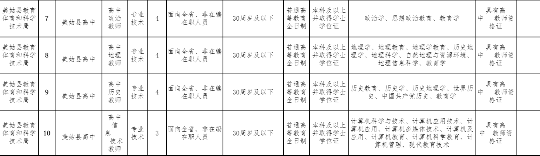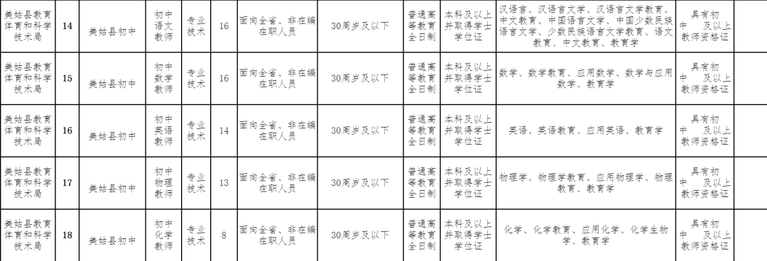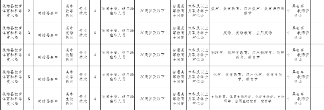 为“巩固拓展教育脱贫攻坚成果同乡村振兴有效衔接”建立一支数量充足,结构合理,素质优良的教师队伍,经县委、县政府同意,拟面向全省公开考核招聘初、高中教师180名,现将有关事项公告如下(本公告在美姑县人民政府门户网站[http://www.meigu.gov.cn]上发布)。