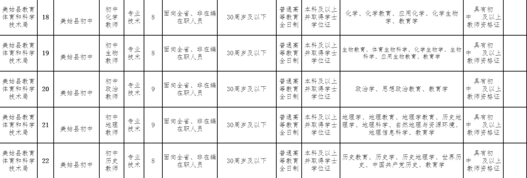 美姑县2022年公开考核聘用中学教师