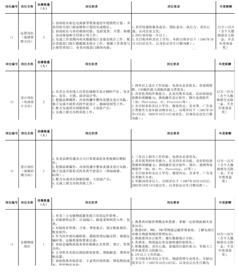 招聘岗位、工作内容、需求数量及任职条件等信息详见附件1。
