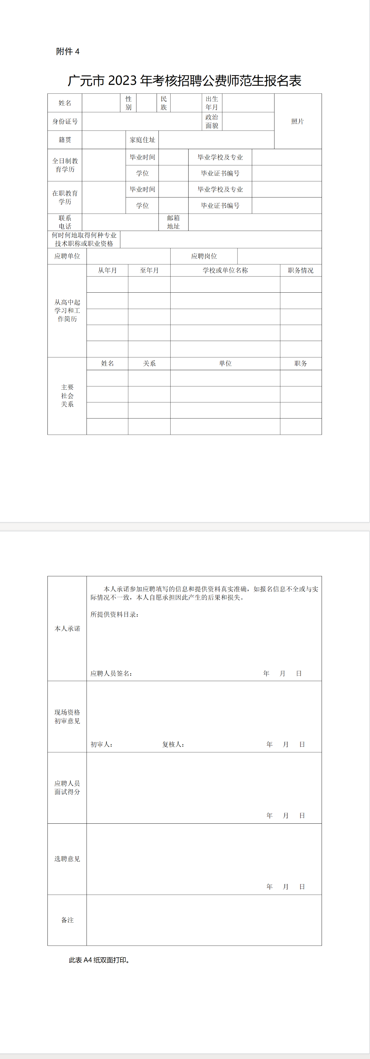 4.广元市2023年考核招聘公费师范生报名表.doc