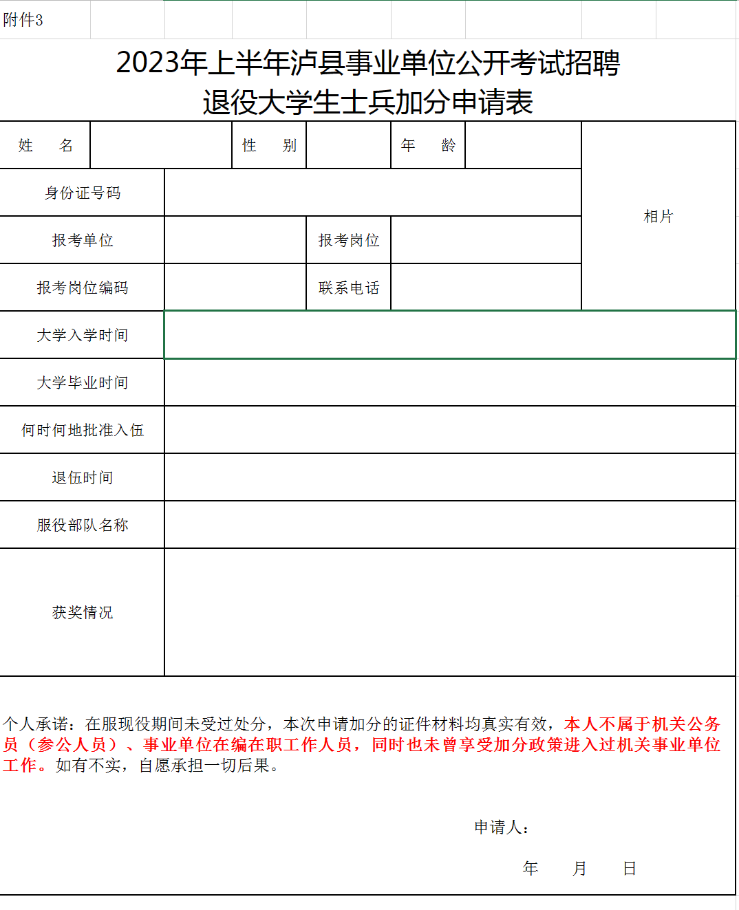附件3-退役老员工士兵加分申请表.xls