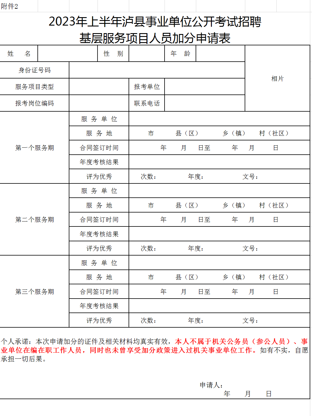 附件2-基层服务项目人员加分申请表.xls