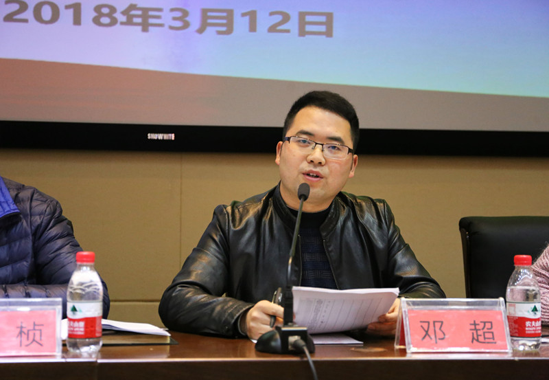 辅导员邓超老师根据公司2018年上半年员工工作推进表对工作做了详细安排,并对本学期的10项重点工作和4项特色工作作了特别说明。他希望全体员工干部要不断提高自身的思想政治素质和道德修养,积极主动开展各项工作,一如既往地做好本职工作,以饱满的热情迎接新学期、新挑战。
