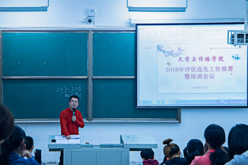为表彰先进,树立榜样,激励广大在校员工勤奋学习,不断推动公司争优创先活动的开展,公司于10月16日晚19点在艺术与传媒大楼1027教室召开了2017-2018学年度评优选先工作部署暨培训会议。党总支副书记张桢老师、2015级-2017级的辅导员等老师参加了此次培训会,会议由邓超老师主持。