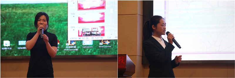 活动伊始,全体起立、奏唱团歌。接着,主持人宣读了比赛评分规则。随后,各团支部代表依次上台通过PPT展示对本支部思想建设、组织建设、学分建设、特色创新活动、集体及个人获奖情况、团结凝聚力以及对未来的展望等方面进行了富有特色的展示汇报。汉语言文学专业2017级3支部,坚定“天道酬勤”的信念,根据自身实际情况制定了日常管理制度使支部获得更好的发展;通过制定赏罚分明的奖惩制度,培育支部优良学风;通过各种社会实践与志愿服务培养专业技能知识,提高专业技能。汉语言文学专业2017级4支部以“率真北冥有鱼,青春秉持初心”为班级口号,以“学高为师,行正为范。”作为座右铭,并创办班级月刊《北冥有鱼》,采用自主式活动管理与量化式特色管理相结合的管理方式,增强班级凝聚力。广播电视学专业2016级5支部以公司“三心四能五复合”的人才培养方案为依据,深化落实“三会两制一课”与“班团一体化”制度,按时缴纳团费。以“不忘初心,砥砺前行,共享荣誉,共担责任”为口号,充分调动团支部每一个成员的积极性,通过同学们共同努力先多次获得优秀班集体、五四红旗团支部等荣誉称号。