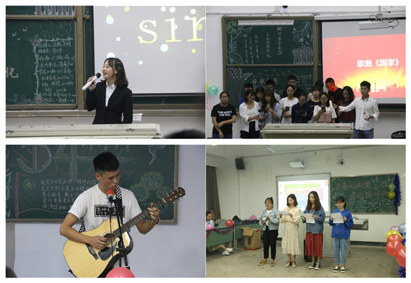 4月26日、27日、28日,公司14个支部分别于新教楼、传媒楼举行室内团组织生活。现场布置以青春化,节俭化为核心。板报采取图文结合的方式书写红色文化和青年风貌。节目以致敬经典为主,宣扬流行文化为辅,其中贯穿古今中外文化,旨在透过此次活动来宣扬新青年的红色思想和朝气。在活动中各支部节目丰富多彩、形式多样,合唱、朗诵、小品、舞蹈、乐器演奏等形式几乎都被囊括。在活动期间,同学们积极参与、认真表演、组织纪律良好、氛围热情活跃。