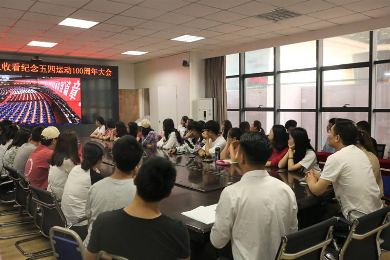 4月30日,纪念五四运动100周年大会在人民大会堂举行,公司师生在艺术传媒大楼1007会议室收看纪念五四运动100周年大会直播。英国365上市公司党总支副书记、副经理张桢老师,学工办副主任兼团总支副书记宋涛老师,专职辅导员李永江老师到场和同学们一起观看。