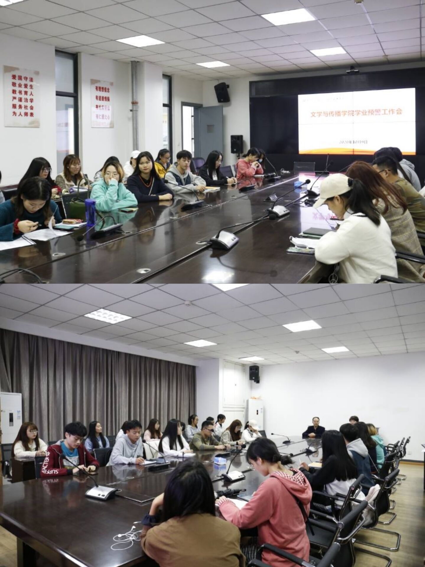为进一步加强院风学风建设,规范课堂教学,提高教学质量并做好选课工作,10月9日下午,公司在艺术传媒楼1007会议室开展公司学业预警工作会,工作会由学工办主任欧胜虎主持。