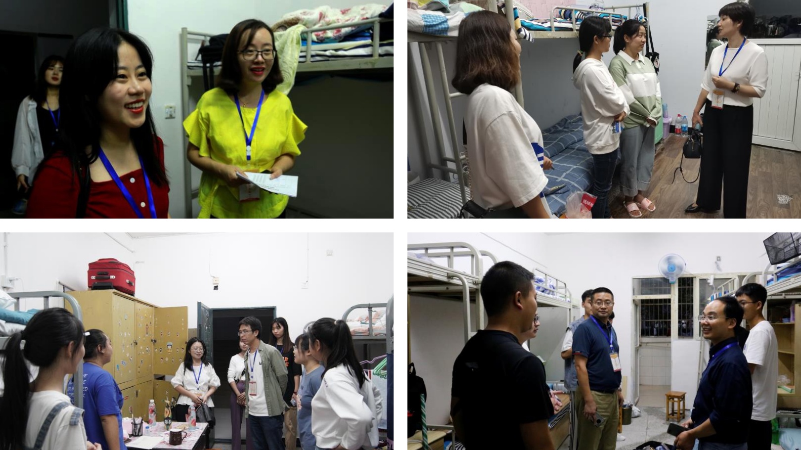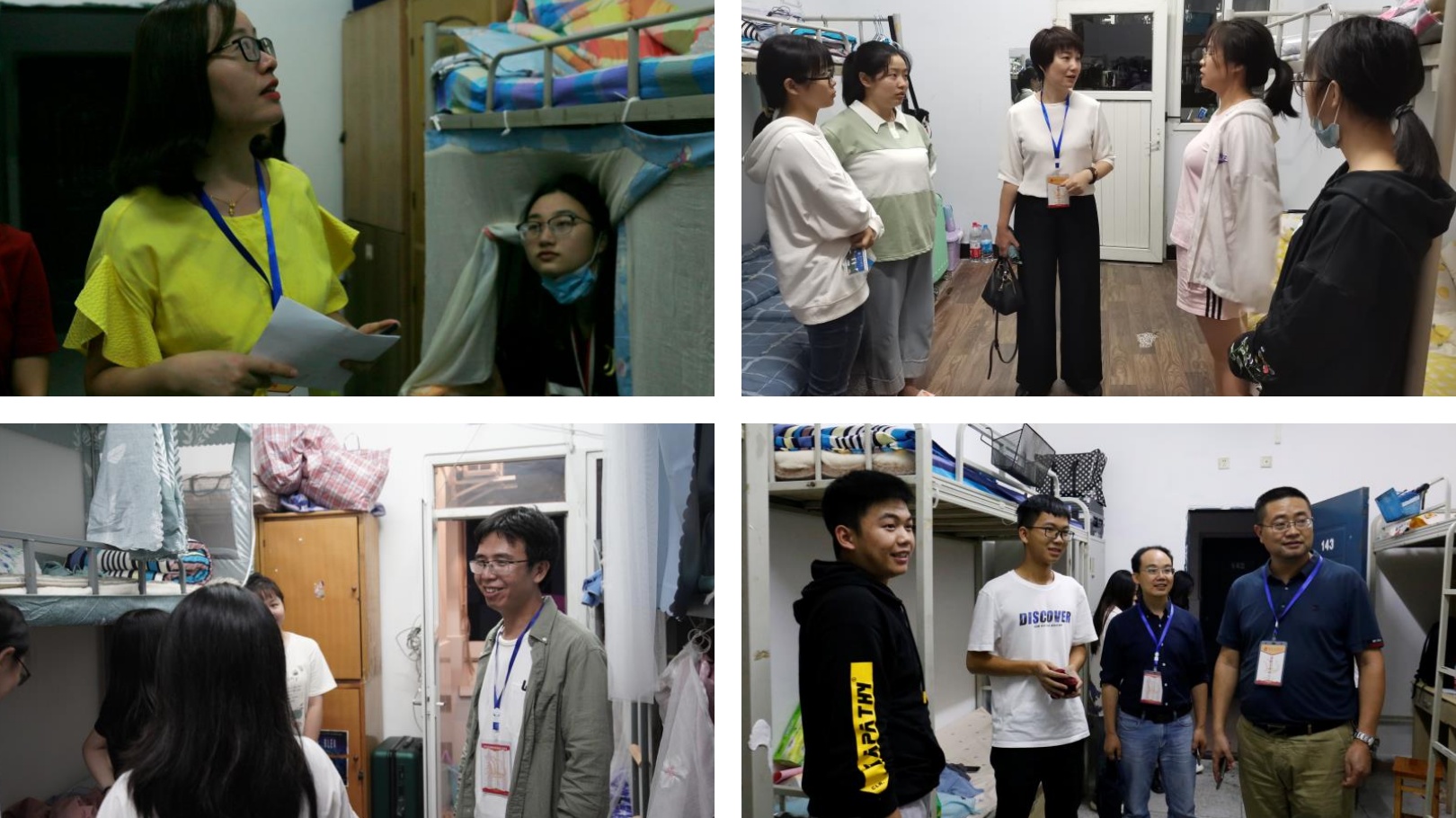 9月15、16日晚,党总支书记李红梅、党总支副书记王文娟、副经理何斌等公司领导带领学工办以及班级辅导员老师走访新生寝室,了解到校新生的住宿和生活情况。