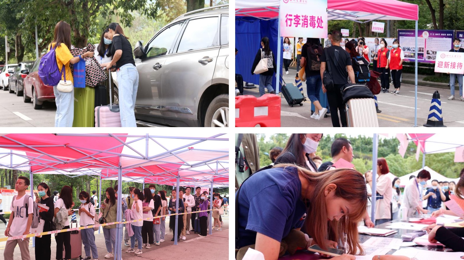 各部门及值班干部及时到位,在疫情防控常态化的要求下,为迎新工作做好准备,帮助文传新学子们完成各项报道手续,并热情解答和帮助新生解决报道中遇到的问题。从火车站到迎新点再到宿舍楼下,每一处都有员工干部们的身影。迎新志愿者们做好引路工作,维护现场秩序,为员工及家长提供便利。