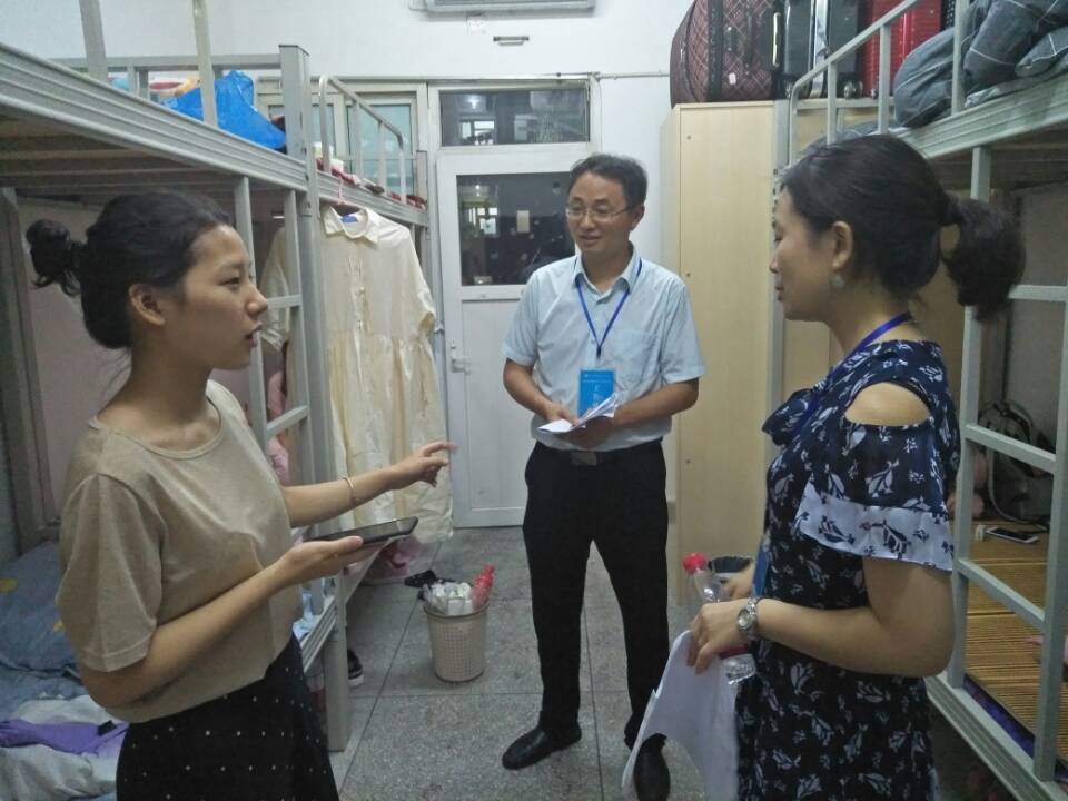 9月11日晚,公司党总支书记李红梅、经理曾宪文、正处级组织员张波、党总支副书记王文娟、副经理彭金祥、张桢、专职辅导员孙琪、李永江和兼职辅导员胡郑丽等率团总支员工会部分员工干部深入走访2019级新生寝室。