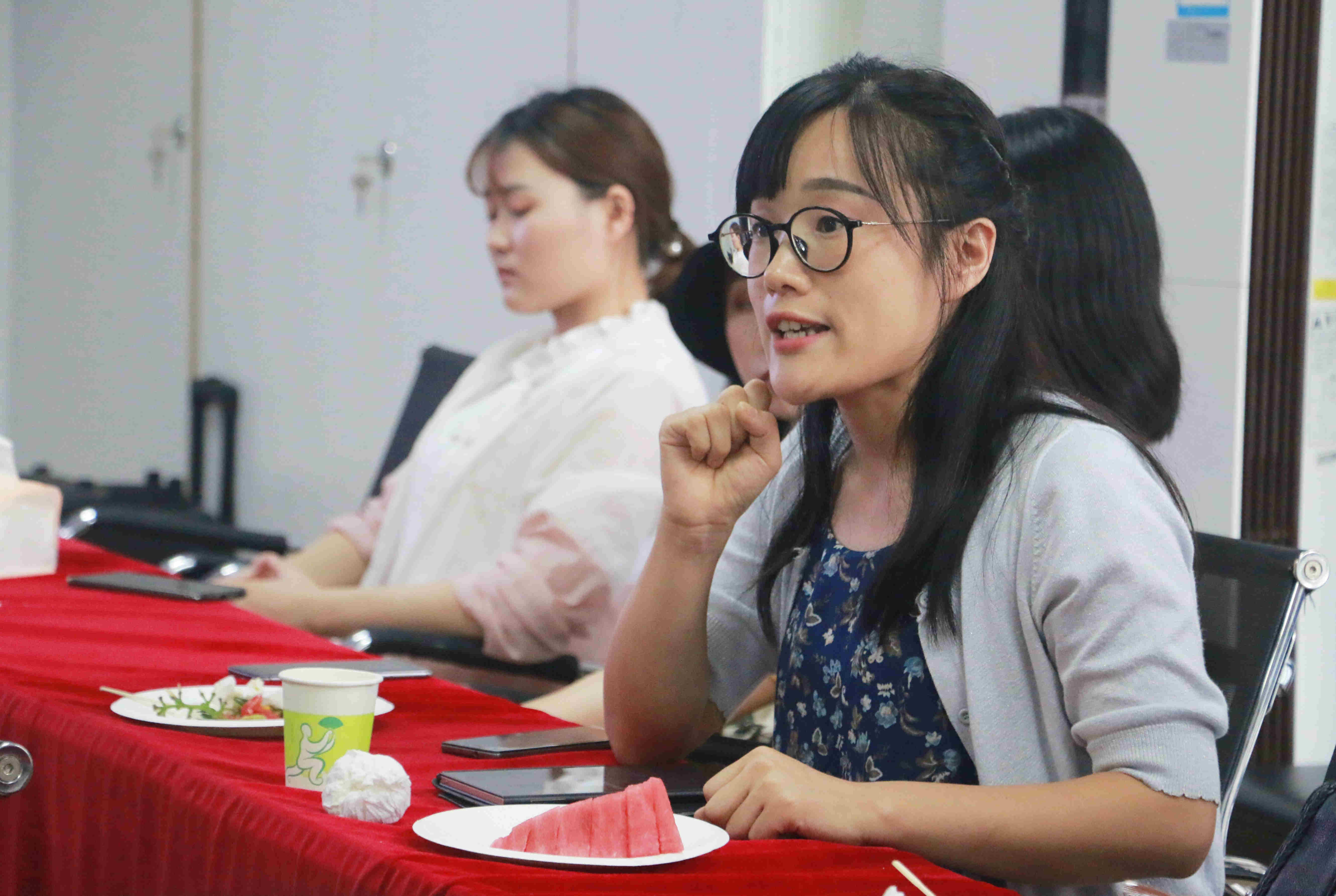 会议伊始,张桢老师强调此次座谈会主要围绕专业学习、专业实践、人才培养、教学管理、员工工作、实业实训、人才招聘等方面进行交流,也鼓励大家分享老员工活中发生的趣事与故事。随后,员工代表们展开交流。汉语言国际教育专业林杰坤表达了自己对公司的感激与不舍。汉语言文学专业杨思敏谈到了卓越教师培训班带给她的独特收获。其他毕业生代表也积极发言,各抒己见,对毕业生实习时间安排、毕业生消息通知、证书发放等提出了自己的意见,并为公司专业课实践训练、选修课课程增添、文理公司员工圈打造等建言献策。员工代表发言结束后,杜松柏老师讲话,他希望毕业生们能自信勇敢地面对人生中的各种挑战、敢于亮剑。最后,成立老师、陈海平老师也纷纷表达了对毕业生的祝福。
