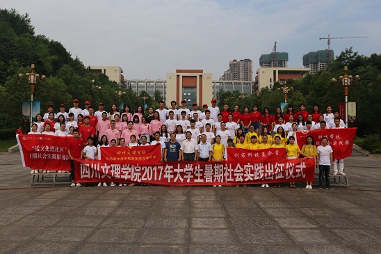 最后,与会领导和各实践活动的带队老师和暑期社会实践团的成员们在文理广场合影留恋。